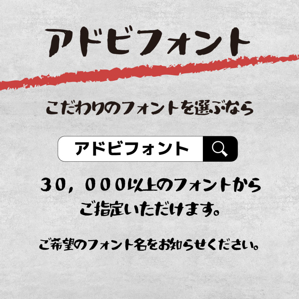 フォントサンプル以外にもアドビフォントからお好きなフォントをご指定いただけます。