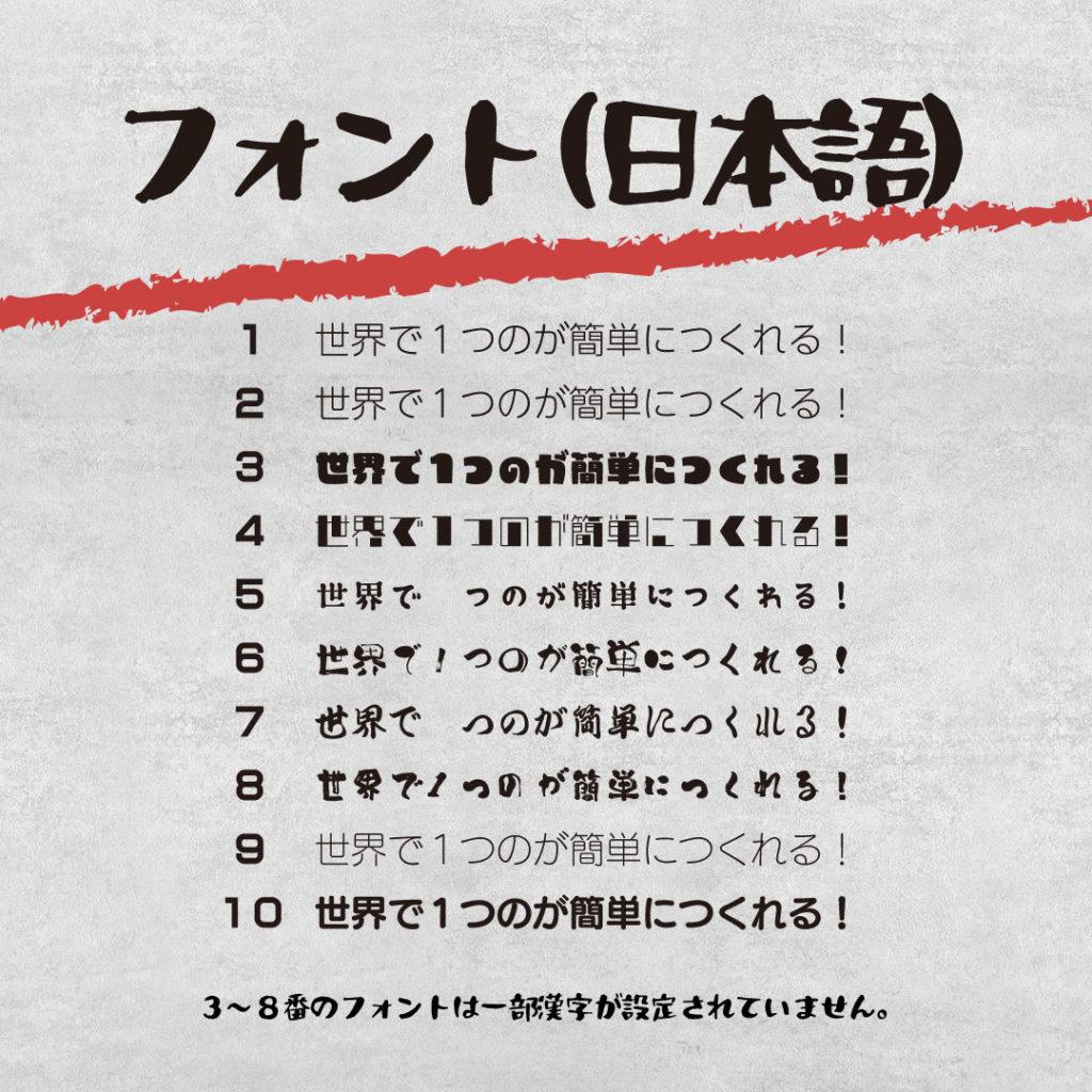 3〜8番のフォントは漢字など一部表示できない場合がございます。