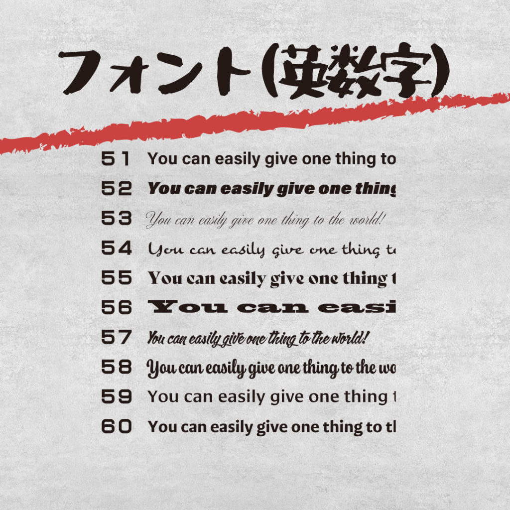 1個からオーダーできるオリジナルギフト フォントサンプル