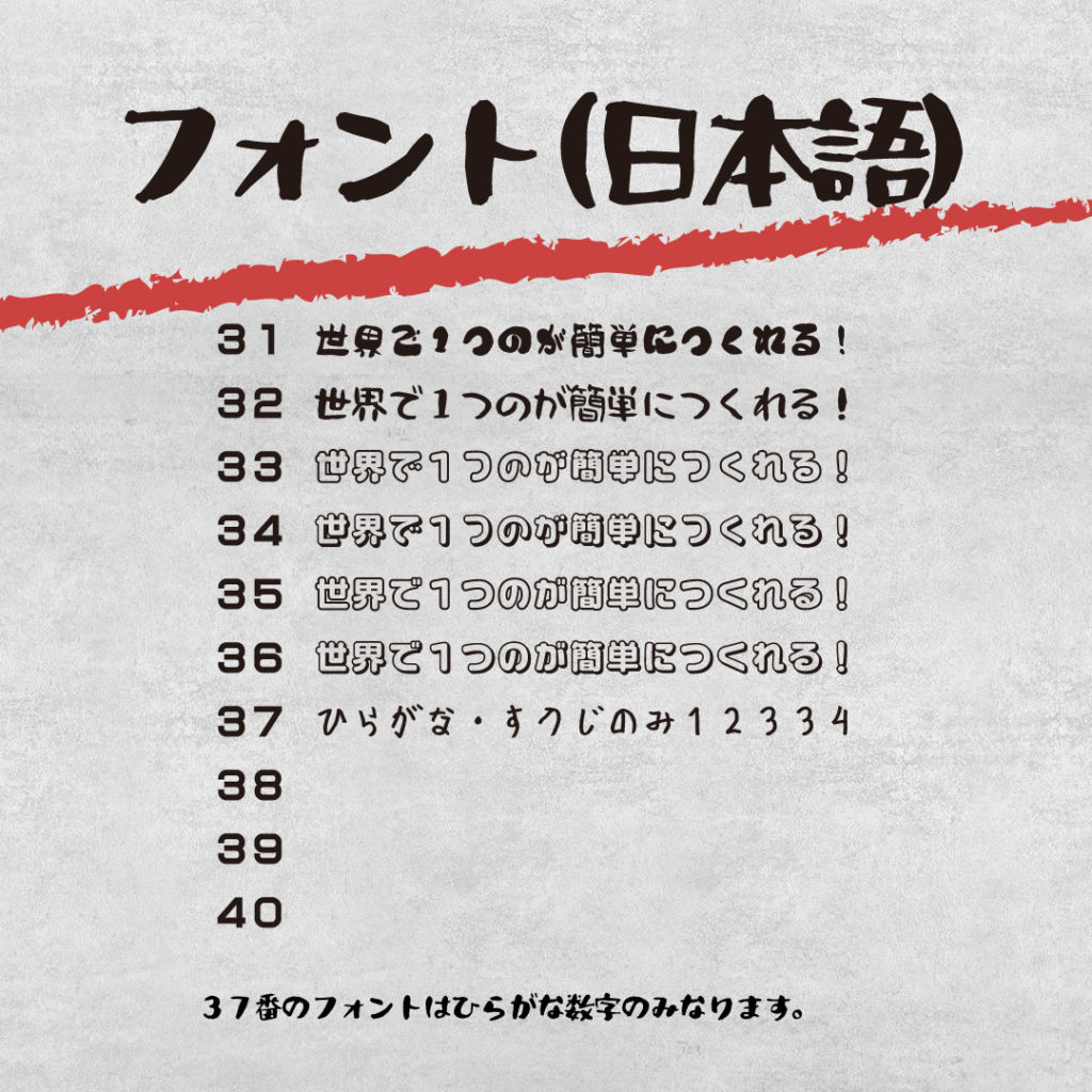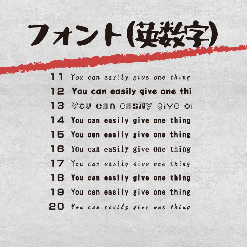 1個からオーダーできるオリジナルギフト フォントサンプル